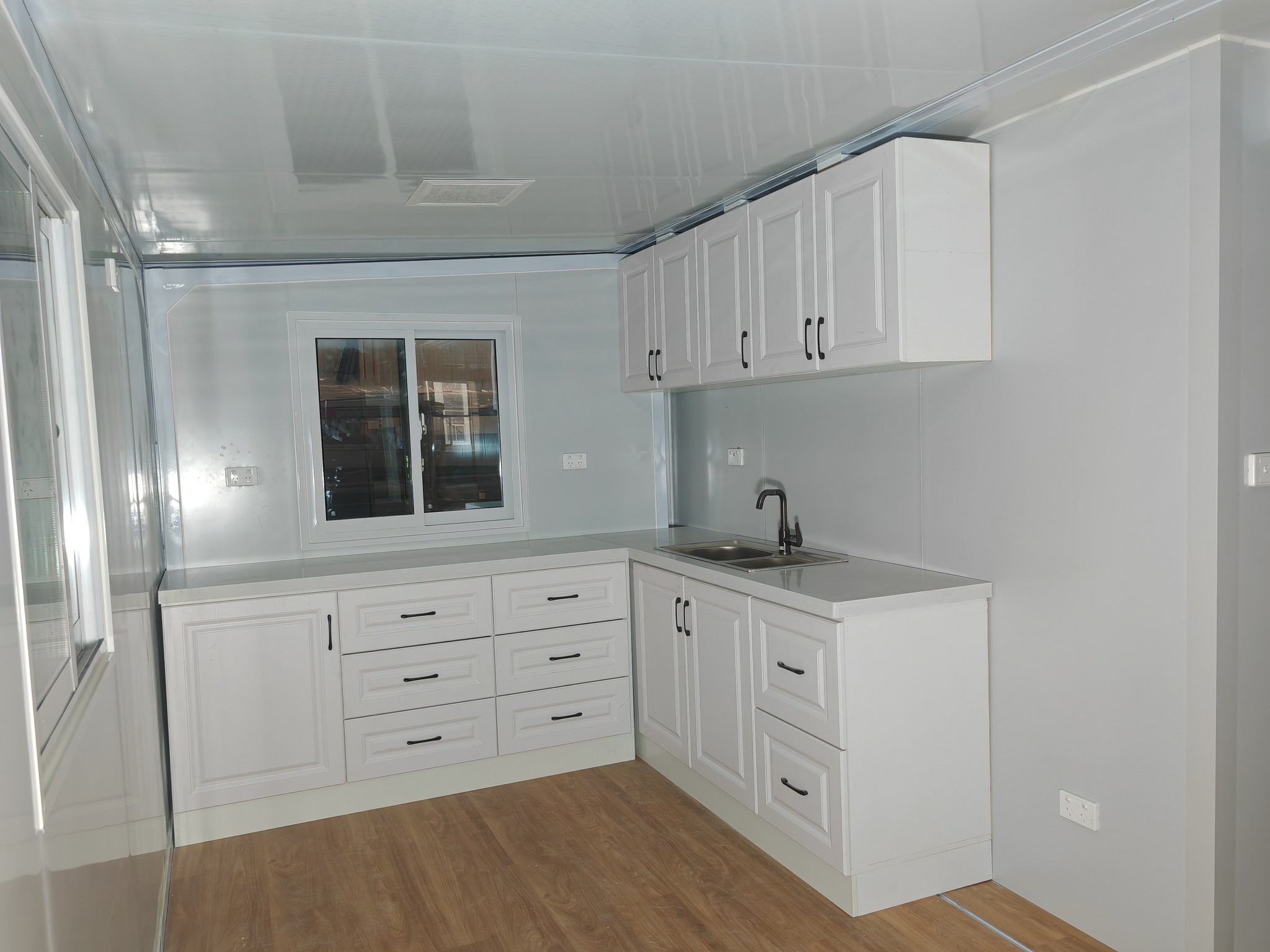 Built with a galvanized steel frame, these homes are resistant to corrosion, harsh weather, and wear and tear. The walls feature insulated panels that provide excellent thermal performance, keeping interiors comfortable in both hot and cold climates. Additionally, the flooring is made from non-asbestos materials, ensuring safety and environmental friendliness. Customers can also choose different materials for doors and windows, as well as customize window placement and structural modifications to suit their preferences.